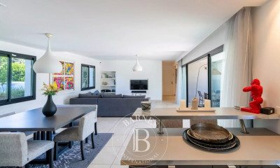VILLA AVEC PISCINE ET JARDIN BORD DE MER HONNORAIRES A LA CHARGE DU PROPRIETAIRE Au sud de Porto-Vecchio, face à la Sardaigne dans un domaine privé cette propriété est exceptionnelle par son emplacement, elle offre un spectacle à plus de 180° sur les plus beaux paysages de Corse du Sud ; la Sardaigne, les Iles Cerbicales, la plage de Palombaggia et le golf de Santa Giulia. Édifiée sur un parc arboré de 4000 m2, d'une surface habitable d'environ 300 m2, cette très belle réalisation contemporaine est desservie par de vastes et multiples terrasses en teck, les volumes sont épurés et les espaces sont baignés de lumière. La piscine à débordement de 13X5m donne l'impression d'être suspendue au-dessus de l'eau, elle offre un spectacle sans limites, entouré d'un joli jardin paysagé. COMPOSÉE COMME SUIT : Niveau principal/Vue grand large dans toutes les pièces • Une entrée avec baie vitrée donnant sur la mer • Un vestiaire invité + cabinet de toilette invités • Spacieux salon avec larges baies vitrées entrant dans les murs ouverts sur la terrasse principale • Salle à manger ouverte sur terrasse • Cuisine open space avec terrasse attenante Niveau supérieur/Vue grand large chambres & salles de bains • Une suite de maitre climatisée donnant sur la terrasse avec salles de bains et WC • Un bureau • Un dressing Niveau inférieur/Chambres & salles de bains avec vue mer • Salon TV • 4 chambres climatisées • 4 salles d'eau avec WC • Une buanderie Espaces extérieurs • Salle à manger • Salons • Ping Pong • Abri voitures • Douche Équipements • Barbecue • Baby-foot • Linge fourni • Service possible INFORMATIONS PRATIQUES • Accès mer : Petite crique de sable fin à 10mn à pied • 15mn du centre de Porto- Vecchio en voiture • 7mn des plages de Palombaggia et Santa Giulia • Aéroport de Figari 25km, 30mn • Golf de Spérone 25km VILLA WITH POOL AND GARDEN SEASIDE FEES PAYED BY OWNER South of Porto-Vecchio, facing Sardinia in a private domain this property is exceptional by its location, it offers a show at more than 180° on the most beautiful landscapes of Southern Corsica ; Sardinia, the Cerbicales Islands, Palombaggia beach and Santa Giulia golf course. Built on a park of 4000 m2, with a living area of about 300 m2, this beautiful contemporary construction is served by vast and multiple teak terraces, volumes are refined and spaces are bathed in light. The 13X5m infinity pool gives the impression of being suspended above the water, it offers a show without limits, surrounded by a pretty landscaped garden. COMPOSED AS FOLLOWS : Main level/Wide view in all rooms Entrance with bay window overlooking the sea Guest cloakroom + guest washroom Spacious living room with floor-to-ceiling windows entering the walls open to the main terrace Dining room open to terrace Open space kitchen with adjoining terrace Upper level/Large view large bedrooms & bathrooms An air-conditioned master suite overlooking the terrace with bathrooms and toilets An office A walk-in closet Lower level/Rooms & bathrooms with sea view TV Lounge 4 air-conditioned rooms 4 shower rooms with WC A laundry room Outdoor spaces Dining room Trade shows Ping Pong Carport Shower Equipment BBQ Foosball Linen provided Possible service PRACTICAL INFORMATION Sea access: Small sandy cove 10 minutes walk 15 minutes from the centre of Porto-Vecchio by car 7 minutes from the beaches of Palombaggia and Santa Giulia Figari Airport 25km, 30mn Golf de Spérone 25km