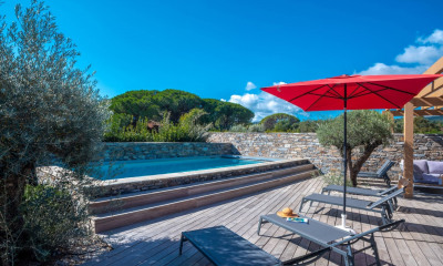 Référence Agence : PAL-704 DISPONIBILITÉS - SAISON - 2026 - Du 30 mai au 11 juillet - du 12 au 26 septembre Splendide propriété «pieds dans l’eau» sur 1 hectare de terrain arboré. Accès piétonnier et privé (environ 300 m) à la plage de Folaca, villa récente, situation exceptionnelle sur Palombaggia. Niveau principal : entrée, vaste salon-séjour s’ouvrant par de larges baies vitrées sur la terrasse principale avec vue mer, salon avec cheminée et TV, salle à manger, belle cuisine indépendante climatisée entièrement équipée, arrière cuisine, WC d’invités et buanderie. 1/2 Niveau inférieur climatisé : - Deux chambres doubles avec placards et terrasse, l'une avec salle d'eau, l'autre avec salle de bains. Une chambre de service avec salle d'eau et WC. Niveau inférieur climatisé : Toutes les chambres ont un accès au jardin et à la piscine. - Deux chambres doubles avec placards et salle d’eau, un dortoir enfants avec lits superposés (4 couchages), placards et salle d’eau. Bâtiment indépendant climatisé : Une chambre avec salle d'eau et terrasse avec très belle vue mer. Une suite familiale composée d'une chambtre double avec terrasse, d'une chambre d'enfants et d'une salle d'eau avec WC. Les extérieurs : piscine chauffée de 12 x 6 m avec volet roulant, vastes terrasses aménagées avec vue mer panoramique, salon et salle à manger d'été avec barbecue, accès direct à pied à la plage par un portail privé.