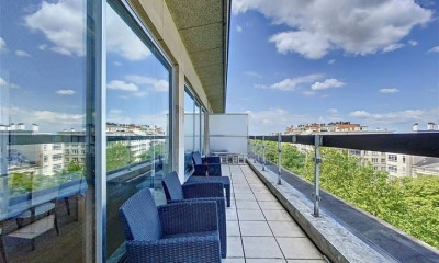 Prince d’Orange – Duplex neuf 3ch + jardin + terrasses + double-garage. Il se compose d’un hall d’entrée avec wc séparé, d’un spacieux living lumineux (+/- 100m2), d'une cuisine américaine hyper-équipée, de trois grandes chambres (+/- 23 – 16 - 16m2), d’une salle de bains (avec wc et douche privatifs), de deux salles de douche (avec wc privatifs), d’une buanderie, d’une cave, d’un jardin (+/- 100m2) et de deux terrasses. PEB (B) Provision pour charges : 300EUR/mois (communs, entretien de la chaudière, ventilation, domotique, électroménager). Disponible immédiatement!