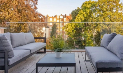 Penthouse rénové à vendre dans la Leopoldlaan près de la digue, jouissant de deux grandes terrasses ensoleillées. Aménagement de l'appartement au 5e étage : Hall d'entrée avec toilettes invités. Séjour avec coin salon, coin repas et cuisine ouverte entièrement équipée. Terrasse avant extrêmement agréable et ensoleillée avec vue mer latérale. Deux chambres à coucher avec armoires encastrées et chacune avec sa propre salle de douche. Local à vélos dans l'immeuble. Ref: '7193063'