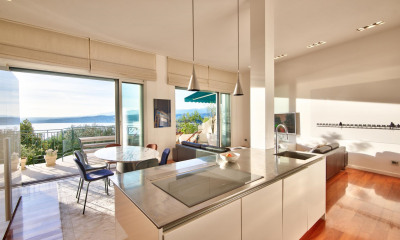 NICE EST- VILLEFRANCHE SUR MER, proche du Col de Villefranche , sur le secteur du Vinaigrier, à proximité de toutes les commodités, écoles et commerces, dans une résidence de standing récente avec piscine, bel appartement de 5 pièces. Il bénéficie d'une grande et belle terrasse d'angle et deux parkings couverts en sous-sol. L'appartement est composé d'une entrée, d'une première chambre avec salle d'eau, d'un wc indépendant, d'une buanderie, d'une seconde chambre avec douche et wc indépendant, d'une chambre principale avec douche, wc et placard, d'une 4eme chambre avec salle de bains et placard, d'un séjour avec cuisine américaine équipée et enfin d'une belle terrasse avec vue mer et ville. Le bien est situé au calme et est équipé de la climatisation et d'un système d'alarme. DISPONIBLE DE SUITE Honoraires locataires : 1767.0 euros Dont : - Visite, constitution dossier, rédaction de bail : 1383.0 euros - Etablissement état des lieux : 384.0 euros - Dépôt de garantie : 8000.0 euros Loyer 8350.0 euros /mois C.C, dont charges mensuelles : 350.0 euros, régularisation annuelle Montant estimé des dépenses annuelles d'énergie pour un usage standard entre 1060.0 € et 1434.0 €, indexées à l'année 2023 (abonnements compris).