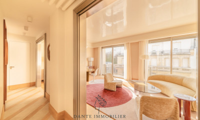 Situé dans un immeuble haussmannien en pierre de taille de grand standing, en plein coeur du Triangle d'Or, à deux pas de l'avenue Montaigne et de l'avenue George V, ce magnifique appartement meublé et entièrement rénové offre une surface de 200 m². Au 5 € étage avec accès privatif par ascenseur sécurisé (code), il se compose d'un vaste hall d'entrée, d'un élégant salon/salle à manger, d'un salon TV ouvrant sur un balcon, de trois suites disposant chacune de leur salle de bains avec WC, ainsi que d'une cuisine entièrement équipée. L'appartement est entièrement climatisé et bénéficie de prestations haut de gamme. Honoraires d'agence : Pour résidence secondaire ou logement de fonction : 12 % du loyer annuel hors charges + TVA (20 %).
