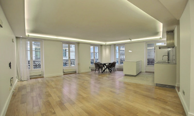 M° Madeleine. Dans immeuble Pierre de Taille au 6ème étage avec ascenseur, un appartement d'une superficie de 95m² comprenant une entrée un séjour 3 chambres une cuisine une salle de bains une salle de douche et 2 WC séparé. Parquet au sol. Chauffage gaz. Place de la Madeleine