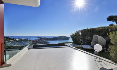 Villefranche sur mer Villa neuve de style contemporain ancrée à flanc de falaise, surplombant la rade de Villefranche sur mer. Cette somptueuse propriété séduit par ses volumes, ses terrasses, sa piscine extérieure, son hammam et sa salle de sport. D'une surface de 360 m² habitable sur 3 niveaux avec ascenseur, la villa se compose d'une très grande pièce à vivre comprenant séjour, salle à manger et cuisine ouverte ouvrant sur une grande terrasse, un deuxième salon avec terrasse, de 5 chambres avec chacune leurs salles d'eau dont une master, et d'un appartement indépendant de deux pièces. La piscine extérieure est chauffée et il y a un petit jardin. Le parking, (non couvert) pour 2 voitures. N'hésitez pas à nous consulter pour tout renseignement. Honoraires locataires : 6000.0 euros - Dépôt de garantie : 15000.0 euros Location Meublée, Loyer 30000.0 euros /mois C.C, dont remboursement sur justificatifs Montant estimé des dépenses annuelles d'énergie pour un usage standard : 426.0 e pour 2015.