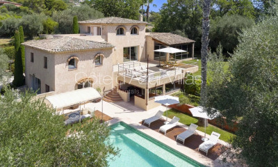 Belle et spacieuse villa entièrement remeublé en 2025 disponible à la location pour 10 ou 12 mois. La villa offre de magnifiques espaces de vie intérieurs et extérieurs sur une grande propriété avec des oliviers centenaires, trois abris de voiture, un portail automatique et des espaces paysagers à deux niveaux. À l'intérieur de la maison d'environ 200 m2, construite sur trois niveaux et décorée avec soin, on trouve trois zones d'hébergement distinctes : Au rez-de-chaussée: - Entrée - Un grand salon avec une TV rétractable au plafond, un espace de travail avec un bureau dans la veranda attenante et une cheminée. - Une belle cuisine ouverte sur la salle à manger donnant sur une grande terrasse extérieure. -Chambre 1: lit double 160cm, dressing -Chambre 2: lit double 140cm, dressing -Salle de bain partagé pour les deux chambres avec baignoire, douche et wc. A l'étage : -Chambre 3 (Master): lit double king size (180cm), dressings, deux terrasses privatives, salle de bain attenante avec douche et wc. Au rez-de-jardin: -Chambre 4: lit double 160cm, salle de bain attenante avec douche et wc, accès direct sur la terrasse avec piscine. -un coin salon avec bureau, et un canapé lit convertible. Extèrieurs: Une grande piscine chauffée avec rideau électrique de protection. Un pool house attenant à la piscine équipée d'un lave-vaiselle, frigo, plaques de cuisson, barbecue..