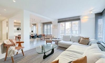 Appartement 3 chambres magnifiquement situé sur l'Avenue du Littoral avec vue sur le Minigolf au coeur du Zoute. Composition: Hall d'entrée avec toilettes invitées, séjour et coin repas, cuisine ouverte, 3 chambres à coucher avec armoires encastrées, salle de bains avec baignoire et toilette, salle de douche. Débarras avec machine à laver et sèche-linge. Cave privée dans la résidence. Possibilité de louer un garage à proximité de l'appartement. Ref: 'SKN_PUB_7426271'