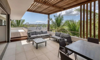 Référence : MU1128DXTSTAB Accessibilité : Accessible aux mauriciens & étrangers Lieu : Trou aux Biches – Ile Maurice Projet : Projet accessible aux étrangers Statut : Sur plan - Livraison Fin 2027 Type : Résidence de Penthouses & Duplex Disponibilités : Duplex de 4 chambres & Penthouses de 2 chambres Description : Duplex de 4 chambres de 238m² dont 24,5 m² de terrasse privatif. Au Rez-de chaussée : Salon & salle à manger, cuisine équipée, buanderie, couloir, 1 chambre d'invité ensuite, terrasse Au 1er étage : 1 chambre principale ensuite avec dressing, 2 chambres ensuite, terrasse, couloir, balcon Climatiseurs inclus : - 1 climatiseur dans chaque chambre - 1 climatiseur dans le séjour Jardin et piscine privee 2 Parkings privés Résidence : Piscine commune Jardins aménagés Ascenseur Parking Parking invité Sécurité 24/7 Commodités : Proches toutes commodités Proche plage A 5 minutes à pieds de la mer Prix de vente : Duplex 4 chambres au prix de MUR 19,500,000* Autres disponibilités : Penthouse 2 chambres au prix de MUR 14,500,000* *hors frais annexes Le projet : Le projet est divisé en trois phases. L'ensemble du projet se compose de 6 blocs d'appartements et de 16 duplex. La phase 1 (bloc A, B, C) & phase 2(bloc D, E, F) sont en construction. La phase 3 est en commercialisation (bloc G, H, I) Nous vous proposons actuellement la phase 3 qui est composé de 3 blocs (G, H, I) Cette résidence moderne est extrêmement attrayante, située au cœur de la communauté dynamique et animée de Trou Aux Biches. Idéal pour y habiter ou comme opportunité d'investissement, elle offre un merveilleux style de vie éclectique sur la côte Nord-Est. Elle se trouve à une courte distance de marche de la plage publique, des restaurants, des magasins, des boutiques et des lieux de divertissements. L'un des atouts les plus significatifs de ce développement est l'utilisation des piscines et du jardin arboré rempli de plantes et de fleurs exotiques. Cette résidence allie harmonieusement lignes contemporaines épurées et éléments côtiers naturels. Conçue pour allier style et confort, son architecture privilégie les espaces ouverts, une lumière naturelle abondante et une harmonie parfaite entre intérieur et extérieur. Avec ses finitions élégantes et ses détails soignés, la résidence offre une atmosphère à la fois sophistiquée et décontractée, s'intégrant parfaitement à son magnifique environnement marin et à sa vue sur les montagnes. A voir au plus vite, réservation à distance possible ! Contactez-nous pour plus d'informations, des photos ou une visite.