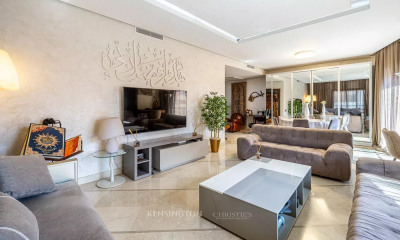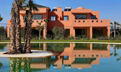 Sublime Triplex en première ligne de golf à la Palmeraie. Cet appartement a été entièrement rénové et décoré dans le style art-déco : il dispose à présent d’une surface habitable de 540 m². Ce grand appartement comprend 2 suites avec leurs propres salles de bains, 2 chambres partageant une salle de bains. Les chambres disposent de grandes terrasse offrant une vue imprenable sur le golf et les montagnes de l'Atlas. Au rez-de-chaussée une grande double réception avec 3 salons, une salle à manger avec cheminée, s'ouvrent sur les extérieur et le green. Le Triplex chrome est situé dans une belle résidence sécurisée et bien entretenue. N’hésitez pas à nous contacter pour plus d’informations ou pour convenir d'une visite.