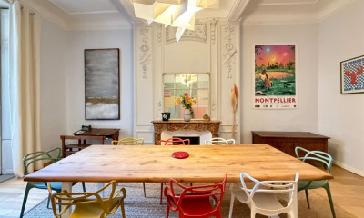 Situé en plein cœur du centre historique de Montpellier, au sein d'une copropriété de standing et de charme, très bien entretenue et sécurisée, cet appartement exceptionnel de 227 m² offre des volumes rares et un cachet unique. Installé au 1er étage, il séduit immédiatement par la générosité de ses pièces, sa hauteur sous plafond spectaculaire de 4,30 mètres et son atmosphère à la fois élégante et chaleureuse, typique des biens de caractère. La distribution est idéale, pensée aussi bien pour le confort du quotidien que pour la réception. L'appartement dispose d'une salle à manger conviviale avec cuisine ouverte, d'un superbe séjour baigné de lumière, de quatre chambres confortables ainsi que d'une suite parentale comprenant sa propre salle d'eau et un dressing. Les trois chambres principales sont desservies par un couloir, offrant une séparation harmonieuse entre les espaces nuit et les pièces de vie. Une agréable pièce de musique, pouvant également faire office de bureau ou de salon intimiste, vient compléter l'ensemble. Pour un confort optimal, l'appartement bénéficie de trois salles d'eau supplémentaires ainsi que de deux WC indépendants. Sa localisation est tout simplement idéale : au cœur du centre historique et à proximité immédiate de l'ensemble des commodités, venez profiter du charme, de l'authenticité et de l'ambiance chaleureuse du centre ancien.