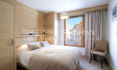 Cet appartement de 84,53 m² est l'investissement idéal pour pouvoir profiter des plus hauts sommets de l'Alpe d'Huez. Il se compose d'un séjour ouvert sur une cuisine équipée, 1 chambre en suite, 1 chambre double, un coin montagne, une salle de bain et deux WC. La terrasse de 10,39 m² vous permettra d'admirer la vue et de profiter d'un cadre privilégié avec son exposition ouest. Le bien est vendu avec un garage ainsi qu'un casier à skis. Visuels non contractuels Récupération de TVA possible Copropriété de 23 lots.