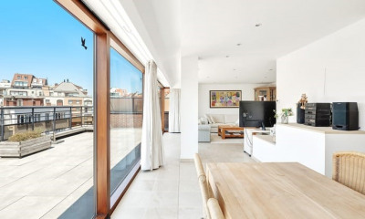 Appartement de prestige d'environ 163m² avec vue sur mer à couper le souffle et terrasses d'environ 17m², à vendre dans une résidence de caractère sur la place Albert. Emplacement privilégié au coeur du Zoute, à proximité immédiate de la plage, de la mer et des commerces. L'appartement a une largeur de façade d'environ 8m60. Ref: '4343918'