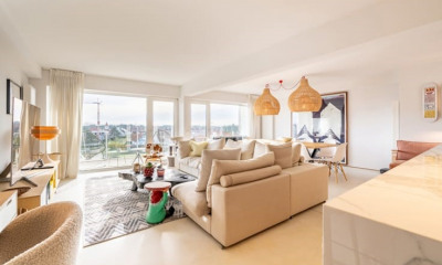 Appartement orienté sud avec 2 chambres et terrasse sur la Kustlaan entre la place du Triangle et la place Albert avec une vue dégagée magnifique ! AMÉNAGEMENT : Belle entrée avec toilettes invités et lavabo séparé. Séjour orienté sud et spacieux avec terrasse ensoleillée, VUE DÉGAGÉE UNIQUE sur les villas et l'arrière-pays. Cuisine équipée. 2 grandes chambres doubles à l'arrière. Salle de bain et douche. Cave et local à vélos (-1). Ref: 'SKN_PUB_7415610'