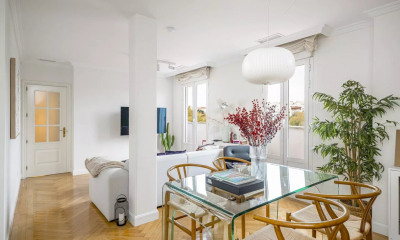 BARNES Madrid vend ce penthouse exclusif de 161 m² situé dans le district de Chamartín, quartier Prosperidad. Il allie un design rétro-vintage à des touches modernes, en respectant les éléments d’origine comme le parquet et en combinant des finitions contemporaines en pierre naturelle et céramique brillante. Le logement luxueux est agencé de façon très fonctionnelle et ouverte, offrant espace et luminosité dans toutes ses pièces. L’accès se fait par un élégant hall qui communique avec un grand séjour-salle à manger avec cuisine ouverte intégrée, entièrement équipée et revêtue de matériaux de haute qualité. Trois fenêtres PVC double vitrage rétractables permettent une connexion directe avec l’extérieur et inondent la pièce de lumière naturelle grâce à une excellente orientation sud-ouest. L’un des grands atouts de ce penthouse exclusif est sa terrasse, conçue comme un véritable oasis urbain : jacuzzi, barbecue argentin, système de brumisation pour rafraîchir l’air et une atmosphère idéale pour en profiter toute l’année. La zone nuit comprend deux chambres (dont une avec vue directe sur la terrasse et un mur revêtu en pierre naturelle) ainsi qu’un bureau fonctionnel, idéal pour le télétravail ou comme pièce polyvalente. Il comprend également une salle de bain complète et un WC invité. Parmi les autres caractéristiques : Rénovation récente avec finitions design. Parquet d’origine combiné à de la pierre naturelle. Cuisine équipée et meublée. Système de climatisation optimisé pour le confort en toutes saisons. Immeuble avec deux ascenseurs et entrée principale représentative. Le quartier Prosperidad se distingue par sa proximité de tous les services ainsi que par sa bonne connexion aux transports publics. Pour plus d’informations, veuillez consulter notre site web https://www.barnes-madrid.com/es, où vous trouverez une sélection soignée d’appartements exclusifs à Chamartín ainsi que d’autres biens premium à Madrid.
