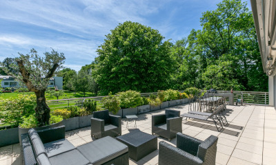 Ce bel appartement clé en main bénéficie d'une adresse privilégiée au cœur de la très prisée commune de Pully. Il permet de rejoindre à pied le charmant centre et toutes ses commodités, la gare de Pully-Sud, ainsi que les rives du lac et les quais d'Ouchy. Le quartier est également apprécié pour sa proximité immédiate avec Lausanne et pour l'excellence de son réseau de transports publics. Le renommé Collège Champittet se trouve à seulement 5 minutes à pied. Cet appartement en duplex de 184 m² séduit par son architecture contemporaine, ouverte et épurée, avec de belles ouvertures vers l'extérieur et une vue sur les Alpes. D'agréables espaces extérieurs prolongent l'espace de vie avec 32,5 m2 de balcon et terrasse et un jardin privatif de plus 110 m2. Le rez-de-chaussée se déploie comme un plateau entièrement ouvert, offrant une circulation fluide entre les différentes espaces de vie. Il recoit un spacieux séjour prolongé par le balcon, une cuisine entièrement équipée avec coin repas ainsi qu'un espace salle à manger. Une pièce attenante au salon complète ce niveau et peut accueillir un bureau, une bibliothèque, un coin TV ou tout autre usage selon vos besoins. L'espace nuit se situe au rez-de-jardin et comprend deux chambres, chacune avec salle de bains attenante. La suite parentale, particulièrement généreuse, bénéficie d'une terrasse privative. Une grande cave de 16 m² complète ce bel objet, ainsi que deux boxes dans le parking intérieur de la résidence (80 000 CHF en sus). Un bien clé en main avec jardin, idéalement situé pour se déplacer à pied, à proximité des commodités et de la gare, et à deux pas du lac.