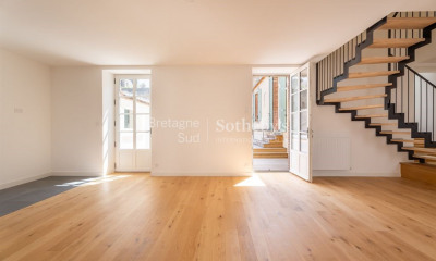 Demeures Marines vous dévoile, « La longue vue » un appartement de caractère de 130 m2 environ, face au port de Vannes. Nichée au cœur de l’un des quartiers les plus prisés, cette adresse rare offre un cadre de vie d’exception entre authenticité et art de vivre. Au cœur d’un immeuble d’armateur du XVIIIe, cet appartement conjugue l’élégance de l’ancien et le confort d’une rénovation haut de gamme. Dès l’entrée, des rangements intégrés pensés avec soin se dévoilent, donnant le ton d’une atmosphère chaleureuse portée par le mariage raffiné du parquet, des pierres apparentes et des belles hauteurs sous plafond. L’empreinte du lieu, à la fois sobre et intemporelle, se révèle au fil des pièces. La vaste cuisine ouverte, aménagée et entièrement équipée, s’ouvre côté port. Elle offre un espace convivial, idéal pour partager des repas et recevoir vos invités. Le salon, baigné de lumière, séduit par ses volumes et sa bibliothèque sur-mesure courant le long d’un mur entier. Une cheminée fonctionnelle y ajoute chaleur et convivialité, créant une atmosphère accueillante en toutes saisons. Là encore, la vue imprenable sur le port compose un tableau vivant, au rythme de la vie vannetaise. Côté nuit, trois chambres de belles superficies, dont deux avec placards intégrés, invitent au repos. La salle de bains, élégante et fonctionnelle, dispose d’une baignoire et d’une douche. Cet appartement situé au deuxième étage offre une lumière traversante d’est en ouest. Chaque détail a été pensé avec goût, dans un esprit à la fois contemporain et respectueux de l’âme des lieux. Un bien rare, véritable coup de cœur, au cœur de la vie vannetaise : marché hebdomadaire, restaurants, commerces et animations en bord d’esplanade… le tout accessible à pied. Pour prolonger ce coup de cœur, un second appartement sous mansardes peut être annexé à « La Longue Vue », permettant d’accueillir famille et amis en toute intimité. Local vélo Cave de 26 m2 en rez-de-chaussée Au pied des commerces et des écoles 10 minutes en transports en commun de la Gare de Vannes 5 minutes à pied des Halles et du marché hebdomadaire 10 minutes de la plage de Conleau