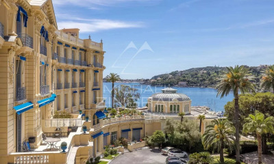 Exceptionnel dans maison belle époque au coeur de Beaulieu sur mer, superbe dernier étage traversant en duplex de 127m2, immense séjour, salle de bains et salle de douches, vue panoramique mer, plein soleil au calme. Cave et garage .