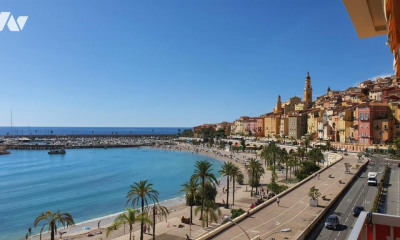 Appartement T3 en front de mer à Menton Garavan, face au port, avec vue mer panoramique sans vis-à-vis. Situé en avant-dernier étage de la résidence La Grande Palmeraie, il offre 65 m² habitables prolongés par 37 m² de terrasse et balcon. Séjour avec cuisine équipée, deux chambres, salle d'eau avec WC et WC indépendant. Proximité immédiate des commodités et des transports. Garage fermé en sous-sol disponible en supplément.