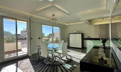 C'est dans la magnifique ville balnéaire d'Antibes et plus précisément dans le secteur de Juan-les-Pins que s'installe ce projet neuf. Cette résidence de standing bénéficie d'un emplacement idéal à seulement 200 mètres de plage et tout près des commerces. Cette résidence se fond parfaitement dans son environnement résidentiel et naturel agréable. Cette résidence neuve abrite cet appartement neuf 4 pièces de 99, 09 mètres carrés. Vous entrez dans un appartement neuf avec une jolie entrée avec un placard pour ensuite arriver sur une belle pièce de vie lumineuse et agréable, avec séjour/cuisine à l'orientation Sud-Est. Un dégagement donne sur une chambre de 14.67 mètres carrés dotée d'un placard, une autre chambre de 9.15 également équipée d'un placard. Une suite parentale avec une salle d'eau vient compléter l'ensemble. Une salle de bain équipée d'une baignoire, d'un meuble vasque et des WC. L'ensemble est complété par des WC séparés. Côté extérieur, juste derrière le salon, un balcon de 7.85 mètres carrés, donnant sur un escalier menant à une beau toit-terrasse/solarium, idéal pour vous retrouver avec vos convives dès le soleil couchant pour un apéritif ou un repas.