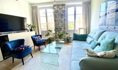 Dans une résidence confidentielle et sécurisée, nichée dans le très recherché quartier des Arènes à Bayonne, ce superbe appartement de 95 m2 offre un art de vivre rare en coeur de ville. Dès l'entrée, vous serez séduit par le raffinement des matériaux, le soin apporté aux finitions et la luminosité des volumes. L'agencement est idéal : deux chambres en suite, chacune avec salle d'eau et WC, offrent intimité et confort à leurs occupants, tandis qu'un WC invité vient compléter l'espace. Les placards sur mesure intégrés dans toutes les pièces allient esthétisme et fonctionnalité, et participent à la fluidité de la circulation. Le vaste séjour s'ouvre avec élégance sur une terrasse et un jardin arboré, invitant à la détente dans un environnement paisible et verdoyant. Situé en rez-de-chaussée surélevé, ce bien rare conjugue les atouts d'une maison avec la sécurité et la simplicité de l'appartement. Dans une copropriété intimiste de 7 appartements, ce bien se distingue par son cachet, son emplacement privilégié et sa qualité de rénovation exceptionnelle.