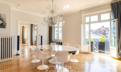 À proximité immédiate de toutes les commodités, découvrez ce loft exceptionnel de 381m² issu de la réhabilitation de bureaux. Entièrement rénové, il allie prestations contemporaines de qualité et cachet unique tout en ayant conservé l'authenticité du lieu avec ses volumes hors du commun procurant une ambiance résolument apaisante. Dans une discrétion absolue, la porte s'ouvre et laisse découvrir un petit paradis luxuriant à l'ambiance 'zen', un véritable écrin de verdure , de quoi vous abandonner à la méditation et au repos ! L'habitation : Au rez-de-chaussée (surélevé) : Passée l'entrée, le lieu s'ouvre directement sur une grande pièce à vivre lumineuse de 70 m2 agrémentée d'une hauteur de plus de 4m sous-plafond, donne un accès direct à un agréable extérieur (de 400 m2 environ) , équipé d'une terrasse en IPE et d'un jardin intimiste qui appelle à la méditation ! Un espace cuisine équipé Deux chambres Une salle de bains (baignoire et douche) Un cabinet d'aisances (avec lave-mains) Un espace dressing Au niveau inférieur : Quatre grands espaces nuit (avec bureau intégré) Une buanderie avec dressing Une salle d'eau et détente (douche + sauna) Un espace home/cinéma Un cabinet d'aisances Au niveau supérieur : Un espace en mezzanine Une chambre L'extérieur : Terrasse + jardin de 400 m2 bien exposés Le jardin et terrasses en bois offre de beaux espaces de détente Un garage double Une cave. Une chaufferie (chaudière à gaz avec préchauffage solaire) La situation : Environnement calme aux portes de Strasbourg. Commerces et commodités en centre-ville à 5min, pistes cyclables pour circuler où vous le souhaitez Le centre-ville à 15 min en tramway. Le Golf du Fort à 10 min Les informations sur les risques liés à ce bien est exposé sont disponibles sur le site Géorisques : Prix : 1 150 000 euros Net vendeur (+ 4.96 % d'Honoraires d'agence, soit 1 207 000 euros HAI).