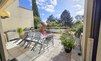 Secteur Debrousse Dans une résidence de standing fermée et sécurisée, sur un emplacement exceptionnel, l'appartement traversant (Est/Ouest) a fait l'objet d'une rénovation totale et de qualité en 2023. Vous accéderez par un hall d'entrée confortable (avec rangements) à l'appartement, appartement s'organisant autour d'une belle et grande pièce de vie (38 m²) avec accès à la terrasse permettant de contempler une vue incroyable sur toute la Métropole Lyonnaise, de Fourvière aux monts du Lyonnais , en passant bien-sûr par la chaîne des Alpes. Vous découvrirez ensuite deux grandes chambres (3 ème chambre possible), une cuisine équipée/aménagée dotée d'un cellier/buanderie et pour votre confort, une salle de bain (baignoire et douche),une salle d'eau et toilette suspendu séparé Chauffage collectif AVEC RÉPARTITEUR Une grande cave est là pour votre stockage. Pour votre stationnement, une place de stationnement privative (en option en sus du prix) vous attend en toute proximité de votre ascenseur. Un garage box fermé en sous-sol vous est proposé en sus. Coté copropriété, des travaux de ravalement de façades, changement gardes au corps de la terrasse, étanchéité ont été effectué en 2023. Commodités à pieds: supérette 9 mn , boulanger 8 mn, poissonnier 10mn ; et le supermarché à 9 mn en voiture. A 5 mn du coeur de village de Sainte Foy lès Lyon Gare TGV Perrache à 10 mn Notre avis : Si vous souhaitez vivre au plus proche de Lyon, tout en privilégiant un cadre de vie incroyable, cet appartement de 98 m² Carrez en dernier étage et aux excellentes prestations (''zéro travaux'') est fait pour vous. Référence agence : 25024