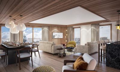 Au coeur du projet Genesis à Tignes, la Résidence Mira s'impose comme une adresse d'exception au pied des pistes. Elle propose des services premium : espace bien-être avec piscine, spa et fitness, ski shop, restaurants, bar rooftop panoramique, conciergerie et club enfants. Un art de vivre raffiné au sein du quartier historique du Lavachet. Cet appartement de 103 m² offre quatre chambres doubles, dont deux en suite, une buanderie, ainsi qu'une cuisine ouverte sur un séjour lumineux. Une salle d'eau et des toilettes indépendantes complètent l'espace. Deux balcons totalisant 15 m² permettent de profiter pleinement des vues panoramiques sur les montagnes. Le bien est vendu avec une cave et une place de parking intérieure. Livraison décembre 2028 Récupération de TVA Frais de notaires réduits Visuels non contractuels Copropriété de 255 lots - dont 84 lots habitation. (Pas de procédure en cours).