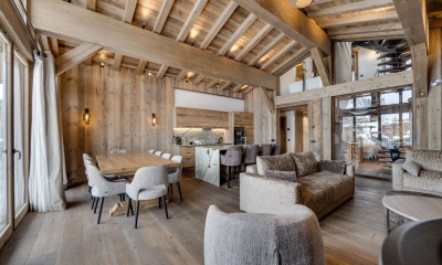 À Val d'Isère, cet appartement en duplex propose une lecture aboutie et contemporaine de l'habitat alpin, où les volumes, la fluidité des circulations et la relation au paysage ont été pensés avec exigence. L'espace de vie s'organise autour d'un séjour généreux, conçu comme un lieu de rassemblement naturel. Les ouvertures cadrent une vue dégagée sur le massif de Solaise, présence minérale forte qui accompagne le quotidien et offre une lecture sensible des saisons. L'atmosphère est chaleureuse, équilibrée, propice aussi bien aux moments partagés qu'aux instants plus confidentiels. La distribution sur deux niveaux permet une séparation naturelle des usages. Trois chambres, pensées comme de véritables espaces de repos, assurent confort et intimité, tandis qu'une cabine vient compléter l'ensemble, idéale pour accueillir famille ou invités sans altérer l'harmonie des volumes. Un appartement pensé comme un lieu de vie durable, à la fois familial et patrimonial, où la montagne s'invite avec justesse et retenue. Proposé par la Maison VALLAT.