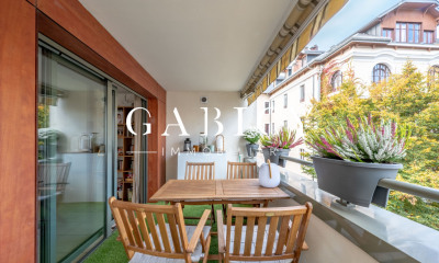 ANNECY LE VIEUX - UN APPARTEMENT D'EXCEPTION EN ATTIQUE T5 de 153 M2 hab et sa terrasse de 97 m2, Un cadre de vie unique, une MAISON SUR LE TOIT dans une Résidence de haut standing, nichée au coeur d'un parc aux arbres centenaires, à deux pas du Chef Lieu d'Annecy le Vieux. Cet appartement en attique de 153 M2 habitables vous séduira par ses volumes généreux, ses finitions haut de gamme et sa luminosité. Sa terrasse exceptionnelle de 97 M2 offre une vue panoramique à 360 ° sur le lac et les montagnes. Un spectacle à couper le souffle en toute saison. Un appartement parfaitement agencé avec un bureau, un office, une buanderie et une superbe pièce de vie de 81 M2 donnant directement sur la terrasse en exposition plein Sud. Un espace nuit composé de 3 chambres, dont une suite parentale avec un dressing et une salle de bain (douche et baignoire), d'une seconde salle de bains et d'un second wc. Située dans un environnement calme et préservé, cette résidence intimiste allie modernité, confort et sécurité. Vous disposerez en annexes privatives, d'une cave et d'un grand garage de 28 M2. Parking de copropriété sécurisé, arrêts de bus au pied de la Résidence, un accès rapide aux réseaux autoroutiers et aux commerces de proximité. Ne manquez pas cette opportunité rare d'acquérir un bien d'exception dans l'un des secteurs les plus prisés d'Annecy le Vieux.
