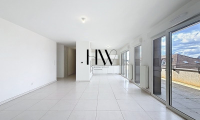 Tout savoir sur cette appartement neuf à Annemasse Les plus : en plein hyper centre, proche gare et mairie, à deux pas du tramway et ligne CEVA, plancher chauffant, beaux extérieurs Laissez-vous charmer par cet appartement neuf niché au dernier étage de cette belle résidence au coeur d'Annemasse. Elle s'invite dans un quartier résidentiel et calme, tout à deux pas de l'hypercentre et de toutes les commodités du quotidien. Vous pourrez facilement accéder aux commodités de votre quotidien et aux transports (tramway à deux pas, ligne CEVA, gare...). Ce bel appartement 4 pièces ne fait pas moins de 104, 07 mètres carrés ! On débute la visite par un jolie entrée de 10, 33 mètres carrés, donnant sur un WC séparé, puis un dégagement sur la droite desservant deux belles chambres de 9.91 mètres carrés et 9.13 mètres carrés, une salle de bain équipée d'une baignoire, de WC suspendus et d'un meubles vasque suit. Puis c'est ensuite sur la gauche que vous retrouvez une chambre parentale avec une belle chambre de 15 m² avec une salle d'eau. Enfin, vient la magnifique pièce de vie rassemblant un vaste salon et une jolie cuisine ouverte, le tout couvrant 39.73 mètres carrés. Vous disposez d'une belle luminosité avec les multiples orientations et les grandes ouvertures sur l'extérieur. Vous pourrez d'ailleurs, dès la belle saison, profiter d'une grande terrasse de 80.46 mètres carrés et d'une plus petite terrasse couverte de 8.18 mètres carrés. Vous aurez plaisir à prendre le petit-déjeuner et à bénéficier d'une vue dégagée sur la commune et ses environs verdoyants. Entre prestations de qualité comme le plancher chauffant hydraulique dans toutes les pièces (sauf salle de bain), des volets roulants électriques, des systèmes de sécurité, vous bénéficiez également d'un garage en sous-sol sécurisé. Caractéristiques Principales : Proches transports et commerces, quartier résidentiel, bel espace de vie, grande terrasse et terrasse couverte, prestation haut de gamme. Description du lot : 3 chambres, dont une suite parentale, avec salle d'eau, placards, WC séparés, salle de bain avec baignoire et salle d'eau. Photos non contractuelles