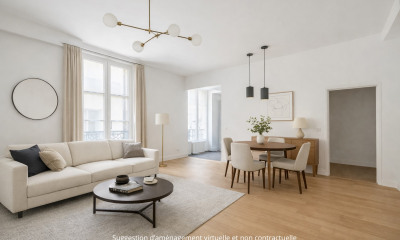 Au centre de Paris, certaines rues ont vu défiler les siècles. Le quartier des Halles, dans le Ier arrondissement, a connu de nombreuses transformations mais aucune n'a effacé les traces du passé et la grandeur des monuments historiques. Plus que central, ce quartier permet de rayonner partout dans la capitale depuis Châtelet-les-Halles, et même au-delà, tout en étant particulièrement riche en bars et restaurants (rue Montorgueil, entre autres) et en commerces (Forum des Halles). Ici, l'église Saint-Eustache, aux dimensions remarquables et à la façade récemment restaurée, est le témoin majeur de cette histoire aux accents royaux. Directement face à ce grandiose édifice religieux, la rue du Jour enchaîne les maisons de villes datant de plusieurs siècles et devenues des immeubles. Tandis qu'à l'extérieur, les trottoirs pavés donnent à cette rue un charme ancien, l'intérieur de la copropriété dans laquelle se situe le bien présenté en exclusivité par l'Agence [.VOUS.], porte également des marques minérales des temps passés. Ainsi en est-il de cet appartement de 85 m² (81 m² loi Carrez), dont le séjour impressionne par sa surface (43 m² au sol) et ses éléments authentiques tels que l'élégante cheminée en marbre et le parquet en pin au sol. Mais c'est surtout son exposition sud-est et sa luminosité qui saisissent au premier coup d'œil. Depuis ce 4e étage (par ascenceur jusqu'au 3ème), à travers les trois grandes fenêtres, la vue sur les toits alentours et sur Saint-Eustache lui donne un attrait particulièrement parisien. Dans un style plus coloré, la cuisine est séparée, tandis que la salle d'eau distincte des WC pourra être remise au goût du jour, mais possède des fenêtres, deux vasques, une douche et une baignoire. Quant aux deux chambres, elles donnent chacune sur une cour et offrent des rangements, tandis que le parquet confère l'harmonie nécessaire à l'ensemble. À l'image de l'église voisine, ce bien définitivement chaleureux mélange les styles pour mieux marquer les esprits. Devant lui, Saint-Eustache, le zinc des toits, les silhouettes de la Tour Saint-Jacques et de la flèche de Notre-Dame rappellent qu'il s'inscrit dans l'histoire monumentale de la capitale et dans le cœur du Paris d'aujourd'hui. Une cave complète ce bien. Pour toute information complémentaire ou demande de visite, nous vous invitons à contacter M. Julien PERELLO Copropriété de 51 lots. Honoraires de 46 000 euros intégralement à la charge des acquéreurs, prix net vendeur : 1 104 000 euros.