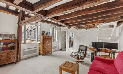 En plein cœur de la rue Saint-André des Arts, dans un immeuble du XVIIe siècle, ce duplex situé au dernier étage avec ascenseur, l'appartement se compose, au premier niveau, d'une entrée, d'un salon, d'une cuisine. À l'étage, une chambre donne sur une terrasse exposée plein sud, ainsi qu'une belle salle de douche. Prix de vente : 700 000 € (honoraires à la charge du vendeur) Nombre de lots principaux dans la copropriété : 36 lots Charges annuelles : 1680€ Classe énergétique : E Montant des frais annuels d'énergie : entre 730€ et 1020€ par an "Les informations sur les risques auxquels ce bien est exposé sont disponibles sur le site Géorisques : ”