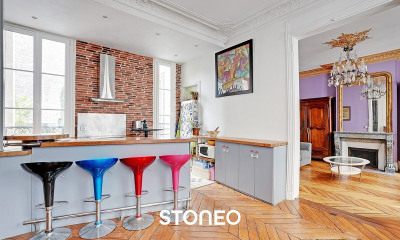 Exclusivité – Vue imprenable sur le Sacré-Cœur. Situé au dernier étage d'un immeuble de standing, au pied de Montmartre, un appartement d'exception, lumineux, offrant un cadre de vie unique. Il se compose d'un vaste espace ouvert comprenant un salon, une salle à manger, et une cuisine ouverte réalisée sur mesure avec des matériaux haut de gamme. S'en suit un second salon, aujourd'hui aménagé en salle de projection pouvant être aisément repensé en troisième chambre. La partie nuit se compose d'une suite parentale avec salle de douche et dressing, et d'une seconde chambre avec salle de bain. L'appartement, entièrement climatisé, bénéficie de multiples ouvertures, dont deux larges baies vitrées, offrant une lumière traversante et des vues dégagées sur tout Paris et ses monuments emblématiques. Enfin, un escalier intérieur mène à une terrasse arborée et aménagée, offrant une vue panoramique sur les toits de Paris. Une cave vient compléter ce bien. « Les informations sur les risques auxquels ce bien est exposé sont disponibles sur le site Géorisques : » Agent commercial immatriculé au Registre spécial des agents commerciaux du greffe du tribunal de commerce de PARIS, sous le numéro RSAC 907 899 629