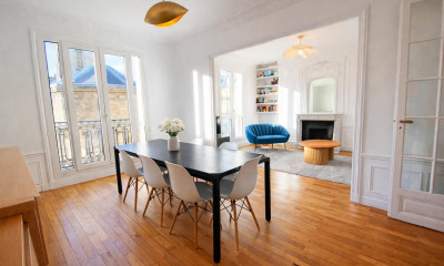 Idéalement situé aux Abbesses au quatrième étage par ascenseur d’un immeuble avec gardienne à demeure, très bel appartement familial 104,85m² loi Carrez et 105,58m² au sol. Il se compose d’une entrée, un double séjour, une cuisine semi-ouverte équipée, une suite parentale avec rangements et une salle de bains avec toilettes, deux autres chambres, une salle de douche avec toilettes. Entièrement rénové en 2021, il saura vous séduire par son plan sans perte de place et ses nombreuses ouvertures. Charme de l’ancien conservé: parquet, cheminée et poutres apparentes. Une cave complète cette offre.
