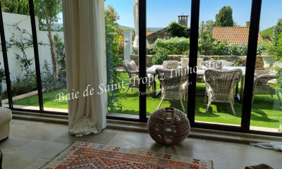 A 20m de la place des Lices, dans un immeuble récent, luxueux appartement de 108 m² environ, ensoleillé de 4 pièces avec 2 terrasses, en dernier étage avec ascenseur, au calme. Il se compose d'une belle entrée, un grand séjour avec cuisine américaine, ilot central, bar et sièges hauts, donnant sur une belle terrasse d'environ 16m² avec pare-soleil. On a une vue directe sur la Citadelle de Saint-Tropez, la place des Lices et la verdure, magique.. Le salon donne aussi sur une deuxième petite terrasse (6m²), wc invités, dégagement, 1 chambre en suite avec télévision et une grande salle de d'eau, placards et wc, 2 chambres avec placards,1 salle d'eau. 1 box et 1 parking souterrain accès direct par ascenseur, une grande cave de 20m² environ, climatisation.