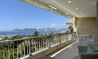 Situé dans une résidence de renom sur la célèbre Croisette, cet appartement exceptionnel offre une vue panoramique sur la mer et la magnifique Baie de Cannes. Récemment remis à neuf, il dispose d'aménagements luxueux et d'une décoration élégante, caractérisée par un mobilier raffiné et discret. D'une superficie d'environ 85 m², il se compose d'une entrée, d'un salon et d'une salle à manger, d'une cuisine semi-ouverte, d'une chambre donnant sur une terrasse exposée au sud avec vue sur la mer, d'une spacieuse salle de douche avec toilettes, d'une deuxième chambre donnant sur la terrasse arrière, d'une autre salle de douche, et de toilettes pour les invités. Ce bien haut de gamme est également accompagné d'une place de parking. Charges: 5160€/an