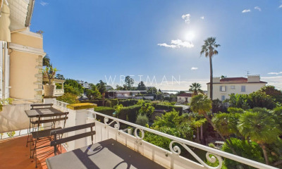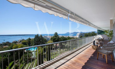 Cannes Californie : Dans une résidence de prestige, sécurisée avec gardien, piscine, terrain de tennis au coeur d'un parc d'environ 3 hectares, cet appartement 3 pièces de 107 m2 offre une vue mer panoramique. Il est composé d'une entrée, d'une cuisine ouverte sur le séjour donnant sur la terrasse d'environ 20 m², d'une chambre de maître avec salle de bain et douche et d'une seconde chambre en suite avec salle de douche. Une cave et un garage complètent ce bien d'exception.