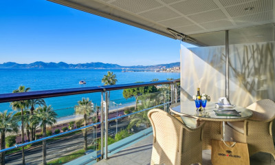 Cannes Croisette, dans une résidence de haut standing et sécurisée, ce magnifique appartement 3 pièces de 90m² est situé au 7ème étage et offre une vue panoramique sur la mer et les îles de Lérins. Ce bien totalement rénové se compose d'une d'entrée avec placard, d'un séjour, d'une cuisine équipée et ouverte le tout s'ouvrant sur la terrasse exposée Sud/Ouest avec une splendide vue mer. L'espace nuit se compose de deux chambres en suite avec chacune placard et salle de douche.