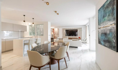 Appartement traversant de 110 m2 composé de 5 pièces, situé au 6éme étage dans une résidence de standing avec gardien, qui vue mer, dans le secteur très prisé de la croisette. L’appartement est composé d’une belle pièce de vie lumineuse de 40m2 avec cuisine américaine, de 4 chambres et de 4 salles de bain, ainsi que d’une terrasse de 16m2 qui offre une vue panoramique sur la mer. Le tout entièrement rénové avec prestations et matériaux de très haute qualité. Le bien est vendu avec un garage ainsi qu’une cave.