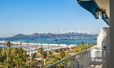 À vendre – Appartement de prestige – Cannes Croisette – 281,60 m² – Vue mer panoramique Emplacement exceptionnel sur le boulevard de la Croisette, à Cannes, au sein d'une résidence de standing sécurisée avec gardien, appartement d'angle situé en étage élevé, offrant 281,60 m² habitables et une vue mer panoramique sur la baie de Cannes et l'Estérel. Entièrement rénové avec des prestations haut de gamme, ce bien se compose d'une entrée, d'un vaste séjour avec salle à manger orientée plein sud, ouvrant sur une grande terrasse face à la mer. Cuisine américaine contemporaine entièrement équipée. Quatre chambres en suite, chacune avec salle d'eau (douche à l'italienne) et rangements intégrés. La suite principale dispose d'un grand dressing, d'une salle de bains complète (baignoire + douche), et d'un accès direct à la terrasse. Annexes : deux garages (sous-sol et rez-de-chaussée), une cave, un studio indépendant de 15 m². Bien rare à la vente, situé sur l'adresse la plus recherchée de Cannes, à proximité immédiate des plages, hôtels de renom et commerces de luxe. Co-exclusivité Côte d'Azur Sotheby's International Realty, spécialiste de l'immobilier de prestige sur la Côte d'Azur.