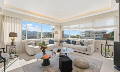 Situé dans le quartier résidentiel et recherché du Mont Joli, cet appartement trois pièces de 81m², en rez-de-jardin surélevé offre un cadre de vie paisible et lumineux, à seulement quelques minutes du centre du Cannet. Rénové avec des prestations de qualité, il séduit par son agencement harmonieux et ses volumes bien pensés. L’entrée mène à un séjour convivial avec cuisine américaine aménagée et entièrement équipée. Cet espace de vie s’ouvre sur une première terrasse exposée plein sud de 38 m², idéale pour profiter pleinement du soleil, avec une vue dégagée sur la mer et les îles de Lérins. L’espace nuit se compose de deux chambres confortables, dont une suite avec salle de douche privative, ainsi qu’une salle de bain et des toilettes indépendants. De nombreux placards intégrés offrent un rangement optimal et discret. Les deux chambres donnent accès à une seconde terrasse de 37 m², apportant une belle continuité entre intérieur et extérieur et créant un véritable espace de détente à l’abri des regards. Une cave et une place de parking complètent ce bien rare, qui se distingue par sa vue, la qualité de sa rénovation et son emplacement privilégié. Une Pépite à visiter sans tarder !