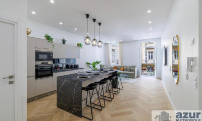 // Nice - Le Port - Antiquaires // Idéalement situé dans le quartier prisé du Port de Nice, tout en bénéficiant d'un calme absolu à l'abri de l'agitation, ce superbe appartement 3 pièces traversant de 65 m² habitables séduit par sa luminosité exceptionnelle et son atmosphère élégante. En parfait état et entièrement climatisé, il offre une décoration soignée et des prestations de qualité. L'agencement comprend: - une entrée avec rangements, - un WC indépendant, - deux chambres dont une avec rangements et salle d'eau avec WC, la seconde disposant également de sa propre salle d'eau, - un séjour baigné de lumière grâce à son exposition sud, - ainsi qu'une véranda isolée avec double vitrage accueillant une agréable cuisine dinatoire entièrement équipée. La magnifique terrasse arborée de 22 m², exposée plein sud, prolonge harmonieusement l'espace de vie et constitue un véritable havre de paix en plein cœur d'un secteur très recherché. Un bien rare sur le marché, idéal en résidence principale comme en pied-à-terre de standing. Ne manquez pas cette opportunité rarissime à la vente. Bien soumis au statut de la copropriété : xx Lots principaux. Charges courantes: 112 € / mois Pas de procédure en cours. Honoraires charge vendeur. Le rapport ERRIAL sur les risques auxquels ce bien est exposé est disponible en cliquant sur le lien :