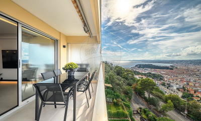 Appartement d'Exception dernier étage - Vue Mer Panoramique et Prestations de Luxe. Découvrez un bien rare et exclusif au cœur du prestigieux secteur résidentiel du Mont Boron, à seulement 5 minutes du Port de Nice. Niché dernier étage d'une résidence moderne de standing avec gardien, ce magnifique appartement traversant de 3 pièces (83 m²) est une véritable œuvre d'art. Luxueusement réinventé par une décoratrice d'intérieur, il offre des prestations haut de gamme et un design contemporain épuré : climatisation réversible gainée intégrée, rangements sur mesure , vendu entièrement meublé. L'espace de vie de 43 m² s'ouvre sur une terrasse de 13 m², offrant un panorama spectaculaire et imprenable sur la mer, la colline du Château et la ville de Nice. Il est complété par une cuisine design ouverte avec son îlot central en pierre marbrière. Côté nuit, l'espace est parfaitement optimisé avec deux chambres au calme, dont une en suite, et deux salles de douche modernes avec deux toilettes. Ce lieu de vie d'exception est complété par un garage fermé et une cave. Dossier de présentation complet avec vidéo disponible sur demande.