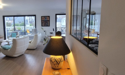 Au coeur de Paimpol, découvrez ce magnifique appartement haut de gamme, alliant espace, confort, calme et emplacement idéal à deux pas des commerces, restaurants et animations du centre-ville. Descriptif : Dès l'entrée, vous serez séduit par sa vaste pièce à vivre baignée de lumière, grâce à son exposition plein sud, et sa cuisine entièrement équipée ouverte sur le séjour. L'accès direct aux deux terrasses offre une agréable vie dedans-dehors, idéale pour profiter du soleil tout au long de la journée. Côté nuit, il propose quatre chambres, dont une actuellement aménagée en dressing, d'une salle de bains, de deux salles d'eau (dont une avec toilettes), des toilettes indépendantes et de deux celliers. Initialement conçu pour accueillir deux logements distincts, il peut facilement retrouver sa configuration d'origine selon vos projets. Les prestations haut de gamme et le confort moderne sont au rendez-vous : ascenseur, résidence sécurisée de standing, deux garages fermés (box) et une place de stationnement privative. Environnement : A proximité immédiate du centre ville, des écoles, du port, de la gare et des sentiers de randonnées. (3.57 % d'honoraires TTC à la charge de l'acquéreur.) Copropriété de 76 lots - dont 24 lots habitation. Charges annuelles : 2505.00 euros.