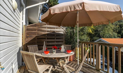 Architecture néo-arcachonnaise, cette résidence implantée dans un cadre verdoyant et préservé abrite au premier et dernier étage, un duplex de 98 m² bénéficiant d’une terrasse de 5 m² avec vue dégagée, idéalement situé au cœur du Moulleau. L’espace de vie, lumineux et orienté Ouest, s’organise autour d’une cuisine ouverte dotée d’un plan de travail en Corian, d’un salon et d’une salle à manger installés dans un remarquable volume en double hauteur, prolongé par la terrasse. Les menuiseries en aluminium gris clair, accompagnées de volets vénitiens en accordéon, offrent une belle ouverture sur l’environnement naturel. Ce niveau comprend également une suite parentale avec salle d’eau privative ainsi qu’une buanderie. Un escalier aérien en métal noir mène à l’étage, où une mezzanine avec garde-corps en verre crée une continuité visuelle avec la pièce de vie. Cet espace dessert une seconde suite sous rampant, éclairée par une fenêtre en chien-assis. Calme, luminosité et vue dégagée caractérisent ce bien rare, à quelques pas des plages et des commerces du Moulleau. Une place de stationnement et un local à vélos complètent l’ensemble. Un duplex au charme unique, pensé comme une véritable maison, parfaitement intégré à son environnement.