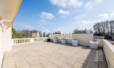 Dans la dernière génération des DARCHAND, copropriété au calme et arborée, proche du centre du Bouscat. Pièce de vie de 60 m² en double expo sud et ouest, vue sur parc. 3 chambres, possibilité d'en faire une 4ème. Une salle d'eau et une salle salle de bains. Clim. Cave et chambre de service louée 500 euros/mois. Parking privé.