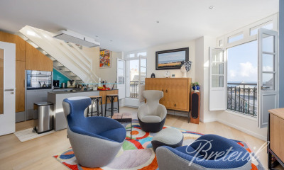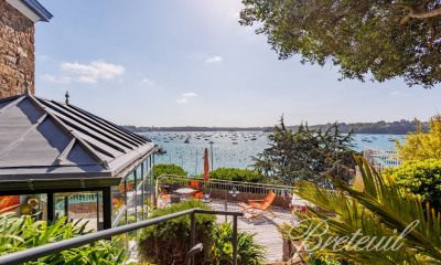 Dinard centre, Appartement T5 de 1ère ligne en pleine vue mer, jardin privé et accès à la promenade du Clair de Lune Emplacement exceptionnel pour ce rez de jardin privé d'une très jolie Villa Balnéaire. Entrée sur séjour vitré à usage de salle à manger, cuisine américaine, arrière cuisine, salon et poêle à bois, véranda. Le tout en pleine vue de mer. Sur le même étage, profitez de deux chambres en suite. WC. Le plus: 3ème chambre en suite indépendante avec accès en direct sur la terrasse et sa vue magique. Un bien exceptionnel offrant des vues magistrales sur toute la baie de Saint Malo. Appartemnt bien entretenu et prêt à vivre de 107m² carrez, 120m² utiles. le Jardin privé de 139m² et ses terrasses avec abri de jardin vous font bénéficier de la meilleur orientation de Dinard car il n'est pas exposé aux vents et vous profitez du matin au soir de l'ensoleillement. Plages et commerces à pied. Dossier sur demande. Visite à distance possible. Nombre de lots de la copropriété: 9, Montant moyen de la quote-part annuelle de charges (budget prévisionnel) : 600 euros soit 50 euros par mois. Les honoraires d'agence sont à la charge de l'acquéreur, soit 4,00% TTC du prix hors honoraires. Logement à consommation énergétique excessive : classe G Les informations sur les risques auxquels ce bien est exposé sont disponibles sur le site Géorisques : georisques. gouv. fr. Contactez Marie-Claude HEMERY Entrepreneur Individuel, Agent commercial OptimHome (RSAC N°530 037 860 Greffe de SAINT MALO) (réf. 587404 )