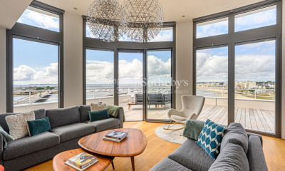 Situé à Pornichet, sur le remblai, au cœur de la baie de La Baule, cet appartement d'exception bénéficie d'un emplacement privilégié face à l'océan. Ce 4 pièces de 119 m² séduit par son superbe séjour avec salle à manger et cuisine ouverte, entièrement tourné vers la mer, offrant une vue panoramique unique de la pointe de Penchâteau jusqu'au port de Pornichet. Issu de la réunification de deux appartements, le bien propose une organisation idéale avec une belle partie réception et une partie nuit indépendante dédiée aux invités. La suite parentale profite d'une vue mer exceptionnelle, d'une loggia intime pour se réveiller au bord de l'eau, ainsi que d'une grande salle d'eau privative. Les deux autres chambres bénéficient d'une salle de bain et d'une salle d'eau indépendantes, accessibles depuis le dégagement, portant à trois le nombre total d'espaces bains dans l'appartement. La résidence, construite en 1990, est de qualité. Un garage privatif en sous-sol (possibilité de négocier 2 places de garage en plus) et 2 caves sont inclus. À mon avis, un bien aussi complet, avec cette vue et cet emplacement, est extrêmement rare sur le marché. Le bien comprend 5 lots, et il est situé dans une copropriété de 79 lots (les charges courantes annuelles moyennes de copropriété sont de 2600 euros et le syndicat des copropriétaires ne fait pas l'objet d'une procédure citée à l'article L. 721-1 du code de la construction et de l'habitation). Les informations sur les risques auxquels ce bien est exposé sont disponibles sur le site Géorisques : Prix de vente : 1 150 000 euros Honoraires charge vendeur Contactez votre conseiller SAFTI : Eric BOURDEAUT - EI - Agent commercial immatriculé au RSAC de TARASCON sous le numéro 509900080