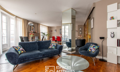 Situé en plein coeur d'Angers, sur la place Molière, ce superbe appartement de 117 m² au 4e étage incarne la modernité et l'élégance. Au sein d'un immeuble moderne avec ascenseur, ce bien rare offre une vue imprenable sur la Maine et un confort de vie privilégié, à quelques pas de toutes les commodités. Dès l'entrée, le charme opère: un vaste salon baigné de lumière s'ouvre devant vous. Cet espace chaleureux et convivial, véritable coeur de l'appartement, profite d'une luminosité exceptionnelle grâce aux larges baies vitrées donnant sur une terrasse en bois de 26 m². La cuisine ouverte s'intègre parfaitement à la pièce de vie grâce à son agencement optimal. Un cellier attenant complète cet espace en offrant des rangements supplémentaires. L'espace nuit, séparé pour préserver l'intimité, propose trois chambres modulables, dont une pouvant être aménagée en bureau. Une salle de bain, une salle d'eau et deux WC assurent une distribution fonctionnelle et fluide, idéale pour un usage quotidien. La terrasse de 26 m² est un véritable atout, offrant une vue sur la Maine, entourée des arbres du Quai Gambetta. Enfin, ce bien rare dispose d'un double parking fermé, spacieux et sécurisé, capable d'accueillir 2 véhicules et du rangement. Cet appartement d'exception allie modernité, standing et emplacement privilégié, au coeur d'une résidence prisée et à proximité immédiate des nombreux atouts du centre d'Angers. Contact : Florian BENATRE - EI - Agent commercial immatriculé au RSAC Angers n° 937 539 690 Les honoraires sont à la charge du vendeur. Copropriété : 73 lots dont 35 lots d'habitation Les informations sur les risques auxquels ce bien est exposé sont disponibles sur le site Géorisques pour les zones concernées: Copropriété de 73 lots - dont 35 lots habitation. (Pas de procédure en cours).