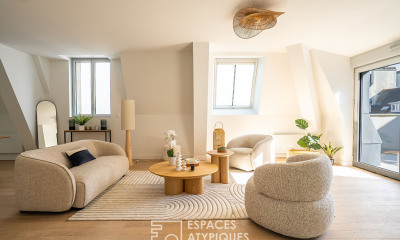 Au coeur du centre-ville de Lorient, au sein du bâtiment historique de l'ancienne Banque de France signé par l'architecte Paul Tournon, prend place ce splendide appartement T5 en duplex. Un bien d'exception où le charme du patrimoine rencontre l'élégance contemporaine. Dès l'entrée, la lumière s'impose. Le large séjour, ouvert sur un espace cuisine, offre un volume spectaculaire et une atmosphère à la fois urbaine et apaisée. Une grande terrasse prolonge cet espace de vie vers l'extérieur, offrant une respiration rare au sommet du centre-ville. L'étage principal accueille également deux chambres, une salle d'eau avec douche à l'italienne, un WC indépendant et une buanderie. À l'étage en duplex, deux chambres cocoon et une seconde salle d'eau avec WC complètent cet agencement équilibré et lumineux. La résidence, parmi les plus prestigieuses de Lorient, séduit par la qualité de son bâti, son ascenseur et son histoire. Tout se fait ici à pied : commerces, restaurants, services et effervescence du centre-ville participent à un mode de vie citadin et raffiné. Entre patrimoine architectural et volumes contemporains, ce duplex en dernier étage incarne l'immobilier atypique et de prestige à Lorient. Une adresse rare pour celles et ceux en quête d'un bien singulier et inspirant. CLASSE ÉNERGIE : C / CLASSE CLIMAT : A Montant moyen estimé des dépenses annuelles d'énergie pour un usage standard établi à partir des prix de l'énergie des années 2021, 2022, 2023 : entre 1 620 € et 2 220 € / an. Les informations sur les risques auxquels ce bien est exposé sont disponibles sur le site : Simon JOUANNO RSAC Lorient 929 999 316 Copropriété de 72 lots (Procédure en cours). Charges annuelles : 3200.00 euros. Simon JOUANNO (EI) Agent Commercial - Numéro RSAC : 929999316 - LORIENT.