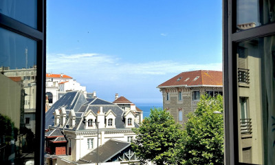 Nathalie Brionne vous propose une opportunité rare à Biarritz : un superbe duplex avec vue océan panoramique, situé au deuxième et dernier étage d'une villa emblématique du début du XX? siècle. Idéalement situé à proximité immédiate du Phare de Biarritz, ce bien bénéficie d'un emplacement privilégié sur la Côte Basque, offrant une vue imprenable sur l'océan et les plages d'Anglet, dans un environnement résidentiel calme et recherché. Un intérieur lumineux et élégant : D'une surface Carrez de 72,8 m² (86 m² utiles), ce duplex séduit par ses volumes, sa luminosité et ses ouvertures sur l'océan. Au premier niveau : - Une cuisine avec grand balcon privatif, - Un double séjour baigné de lumière, offrant une vue mer spectaculaire, - Un balcon supplémentaire prolongeant l'espace de vie. Au second niveau : - Deux belles chambres, dont une avec salle d'eau privative, - Une salle de bains, - Un grand dressing aménagé, - WC séparés. Prestations complémentaires : - Résidence sécurisée et très calme, - Place de stationnement, - Bien rare sur le secteur, à forte valeur patrimoniale. Un produit d'exception, destiné aux amateurs de vues uniques et d'adresses confidentielles. À découvrir sans tarder. Visite interactive 3D disponible après entretien téléphonique. __ Informations importantes – Projet de financement Dans le cadre de la commercialisation de ce bien, les visites seront organisées sous réserve d'un projet de financement sérieux et abouti. Des éléments justificatifs pourront être demandés pour toute présentation d'offre au propriétaire. Nombre de lots de la copropriété : 15, Montant moyen annuel de la quote-part de charges (budget prévisionnel) : 1432 euros soit 119 euros par mois. Les honoraires d'agence sont à la charge de l'acquéreur, soit 4,74% TTC du prix hors honoraires. Les informations sur les risques auxquels ce bien est exposé sont disponibles sur le site Géorisques : georisques. gouv. fr. Réseau Immobilier CAPIFRANCE - Votre agent commercial (RSAC N°485 228 969 - Greffe de BAYONNE) Nathalie BRIONNE Entrepreneur Individuel Réf.937042